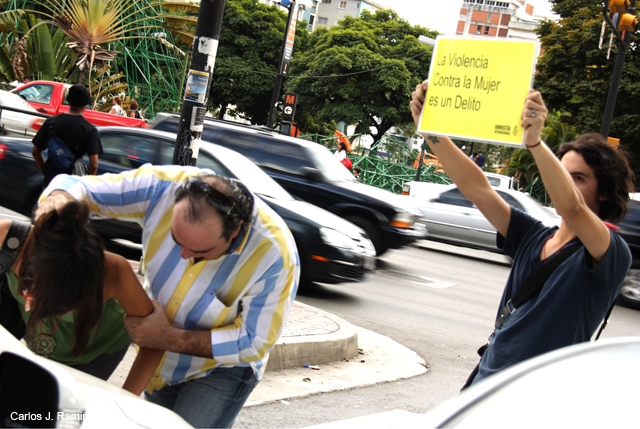 Amnistía Internacional de Venezuela convoca todos los años a Fotógrafos y Artistas Visuales para registrar las acciones flash mob, en pro de llamar la atención sobre este tema. Esta serie fue registrada el 2009-11-28 en la Plaza Francia del Municipio Chacao.